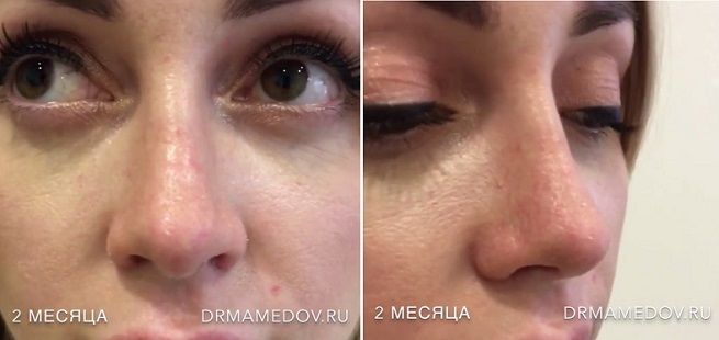 Фото до и после динамичной риноскульптуры после неудачной процедуры