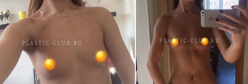 Фото до и после увеличивающей маммопластики круглыми имплантатами 290 и 310 мл
