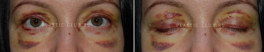 А при верхней синяки под глазами тоже должны быть? на фотке видно, что сегодня синяки появились.... и мне кажется, по фотам, вы выглядели на первый день лучше чем я.....
