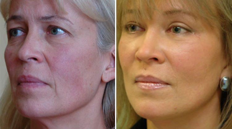 Фото до и после SMAS пластики, внутриротовой эндопластики средней зоны лица