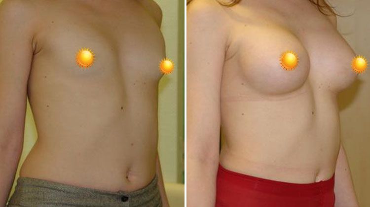 Фото до и после увеличения объема груди из подмышечного доступа имплантатами 390 мл
