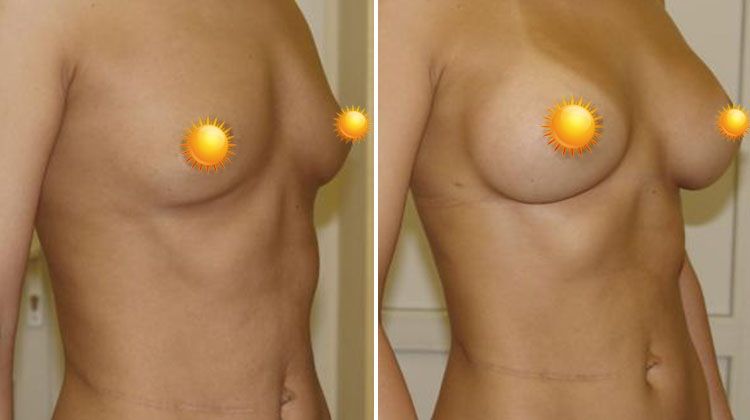 Фото до и после увеличения груди имплантатами 375 мл разрезом по ареоле