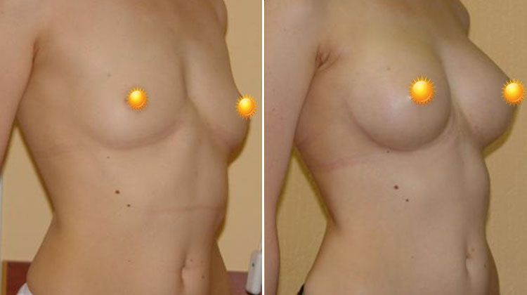 Фото до и после увеличения груди из подмышечного доступа имплантатами объемом 325 мл