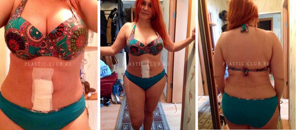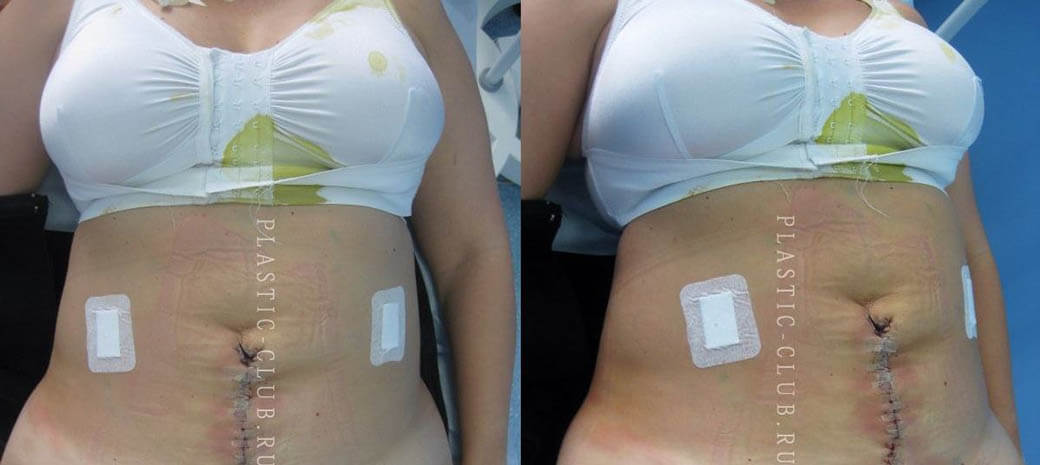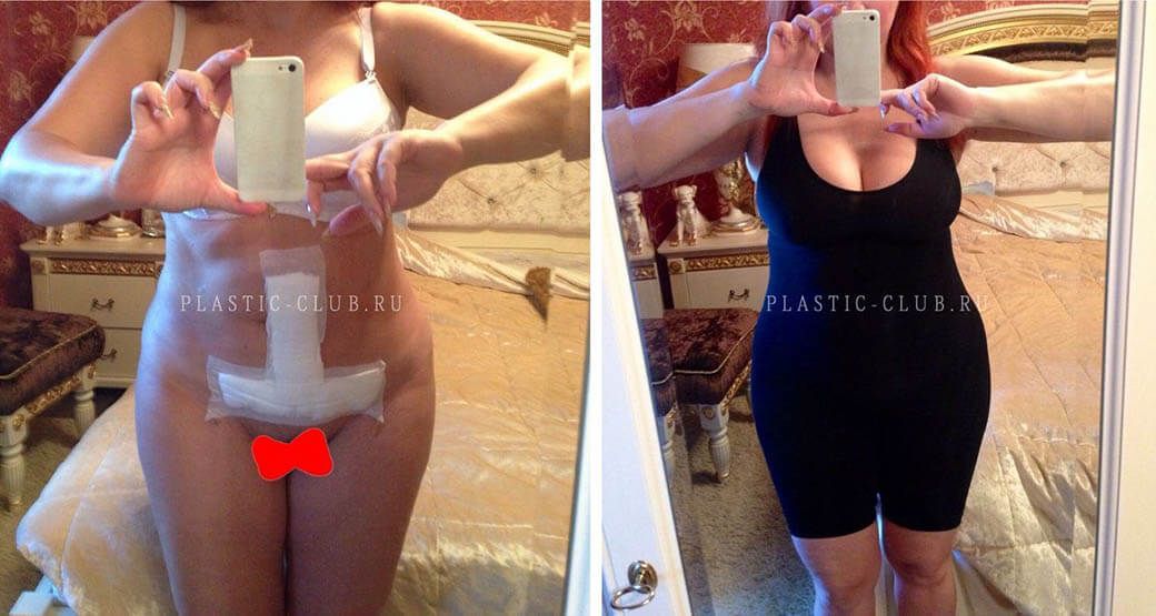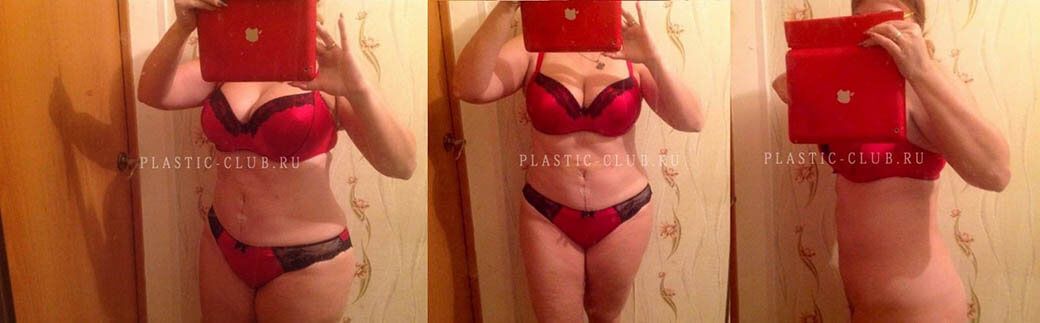 Липосакцию делали и в первую операцию, только сзади под лифчиком, и на боках. А над пупком скопился жирок и висел капюшоном. И получилось, что под пупком все натянуто а сверху него- жирок. Вот его и откачали. Так же вертикальный шовчик стал узенький, когда врач сделал коррекцию.
