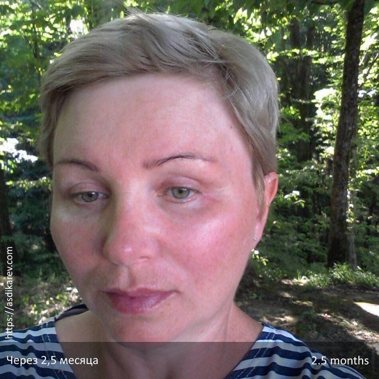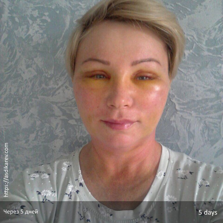 На фото показаны результаты операции по периорбитальному омоложению. Идет процесс реабилитации. Доктором Деминым были проведены эндоскопическая подтяжка верхней зоны лица (лоб, брови, височная область), эндоскопическая подтяжка средней зоны лица, верхняя блефаропластика, нижняя блефаропластика, липосакция шеи, липофилинг век.