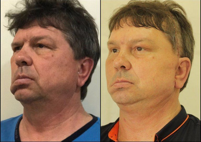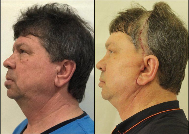 Для пациента, у которого парализована правая часть лица выполнен MASK-lift + дополнительно выполнена частичная SMAS-подтяжка для устранения складки на подбородке. Подтяжка шеи не была выполнена по просьбе пациента. MASK-lift – довольно агрессивная, но эффективная техника. Алгоритм таков: