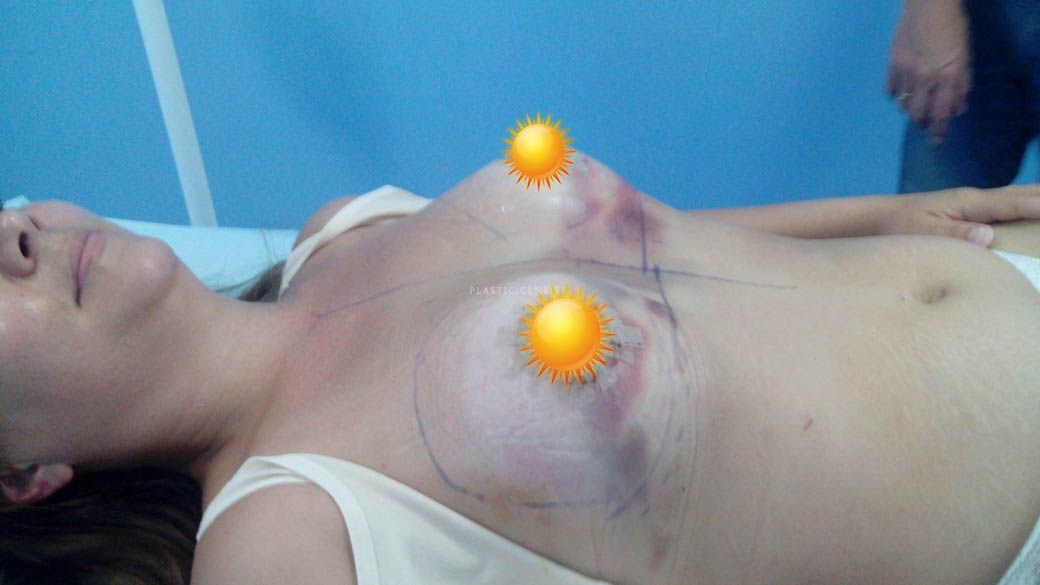 У меня оказалась табулярная грудь! Чего мои местные 2 доктора не видели или не сочли нужным сообщить мне об этой маленькой пикантности! А доктор Фуад сразу это выявил и оазложил мне по полкам как и что он сделает во время оп. Синяки от того, что было непросто сформировать карман. Кожа под ареолой очень тугая и плохо тянется. Девочки, вы не представляете как я счастлива от того, что попала к ТАКОМУ ДОКТОРУ!!! Поэтому те, кто живёт в регионах, далеко от Москвы, не бойтесь дороги, приезжайте к форумным Врачам и тогда будет вам счастье )))))