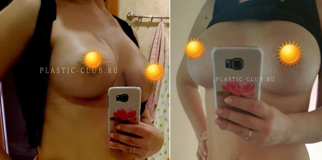 Фото до и после увеличивающей маммопластики имплантатами Natrelle 360 мл