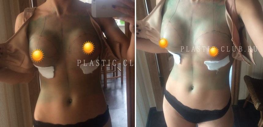 Мне 24 года и вчера была операция. я не рожала, исходник 0,5, ставили круглые евросиликон под мышцу, доступ под грудью, 310 и 290 мл (небольшая асимметрия грудей), под грудью 71, вес 49, рост 165. Изначально договорились на 265 и 290 мл, но в последние дни перед операцией поняла, что мало совсем будет, сейчас ничуть не жалею, что настояла на 310 и 290))) самый ад — это когда начала отходить от наркоза и задыхаться, но это иллюзия была, т.к. на мне была компрессионка и мне казалось что мне сжало грудь очень сильно. Через часа полтора более менее стало, но полной грудью могу вдохнуть раз в 4 минуты где-то. Из-за того что всегда на спине лежу, очень болят мышцы живота, лопатки, шея. Не из лучших ощущения. А так еще пару недель. Грудь побаливает, но терпимо, могу руками вертеть крутить, через неделю на работу уже выйду, думаю) сейчас попробую фото до и после скинуть