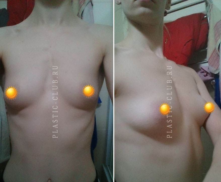 Фото до и после маммопластики имплантатами объема 300 мл под мышку