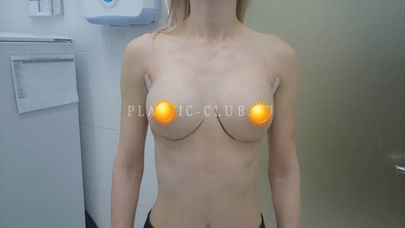 - Увеличение груди круглыми имплантатами объемом 300 мл разрезом под мышкой
