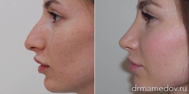 Фото до и после ринопластики с отсутствием травмирования мягких тканей