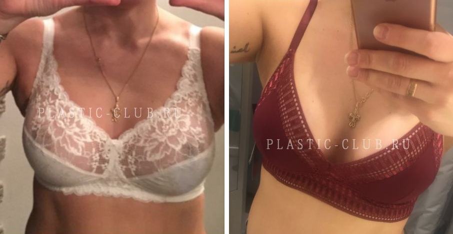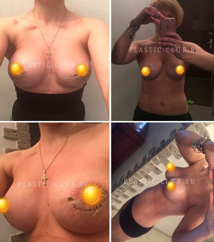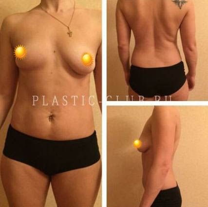 Фото до и после установки имплантатов разного размера, липосакции