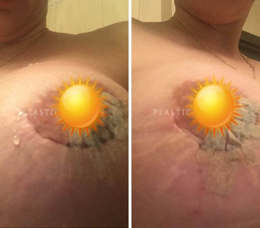Юля, 36 лет, двое родов. Во время вторых родов у пациентки молоко пришло только в одну грудь. И кормила малыша одной грудью, что в последствии вызвало такую асимметрию.