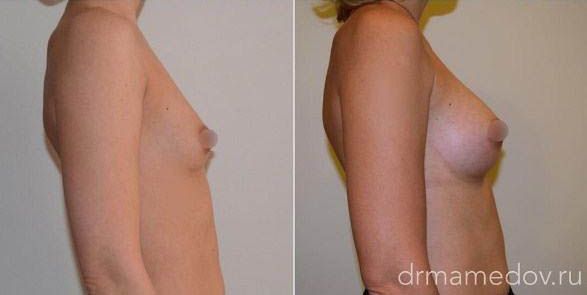 Фото до и после проведения увеличения груди имплантатами 280 сс