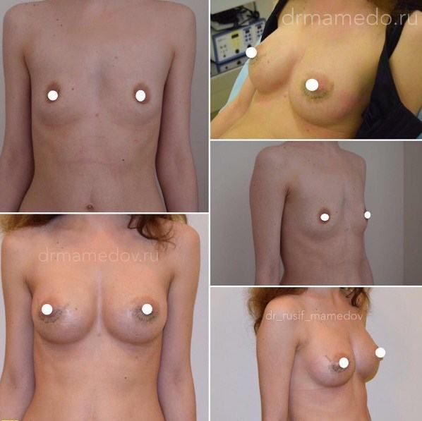 Фото до и после увеличивающей маммопластики имплантатами объема 270 мл