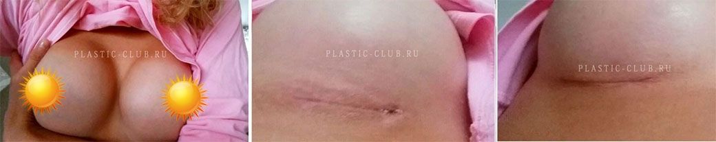 - Увеличение груди круглыми имплантатами объемом 280 мл разрезом под грудью