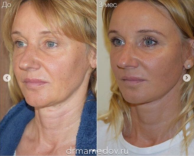 Результат спустя 3 месяца после подтяжки нижней зоны лица и шеи (SMAS-лифтинг).