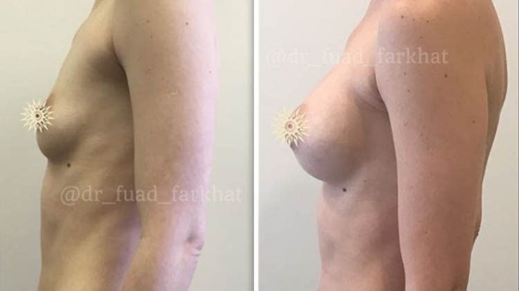 Фото до и после увеличения груди имплантатами объемом 335 через ареолу