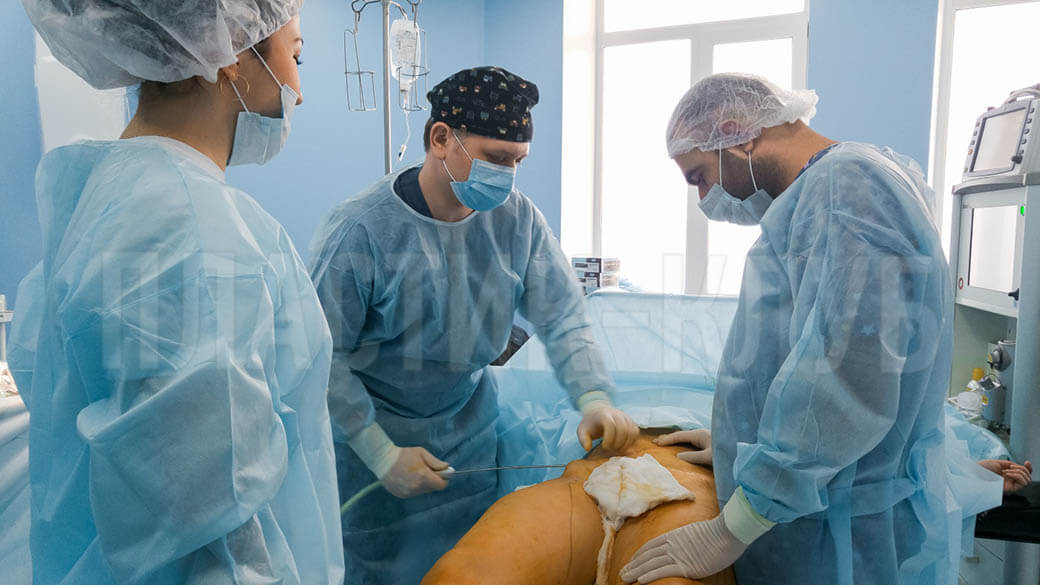 Фото проводения липосакции из операционной
