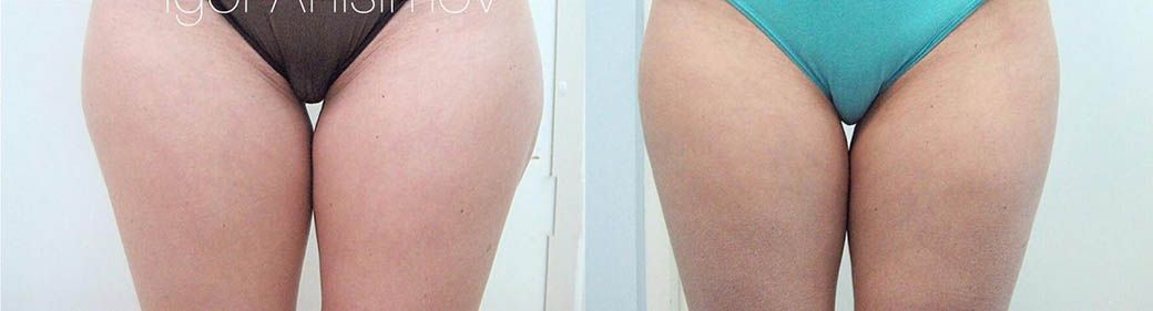 На фото – результат проведенной доктором Анисимовым операции. Была выполнена липосакция внешней поверхности бедер (зоны галифе), чтобы создать максимально эстетичную линию бедра. Такие операции показаны в том случае, когда генетические и анатомические особенности пациента не позволяют ему убрать локальные жировые отложения только лишь с помощью спорта и правильного питания.