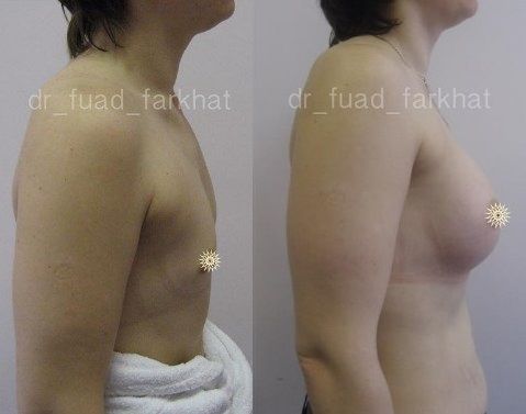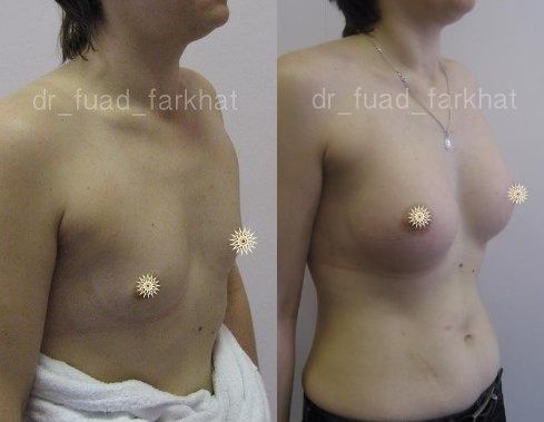 Операция по установке анатомических имплантов при сложной изначальной ситуации у пациентки. Выполнена доктором Фархатом Фуадом. Изначальные данные – врожденная гипоплазия недоразвитие молочных желез у нерожавшей девушки. Объем под грудью 80 см. Пожелания пациентки – 3 размер груди. Ткани практически полностью отсутствовали, доступ произведен по ареоле. Установлены анатомические импланты объемом 375 мл. Результат – гармоничная грудь 3-го размера. На фото можно рассмотреть ситуацию до и после с разных ракурсов. Показан результат операции по истечении 8 месяцев.
