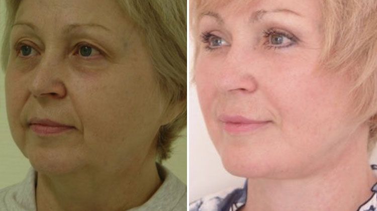 Фото до и после комплексного омоложения шеи и лица