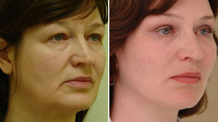 Фото до и после комплексной подтяжки лица и шеи