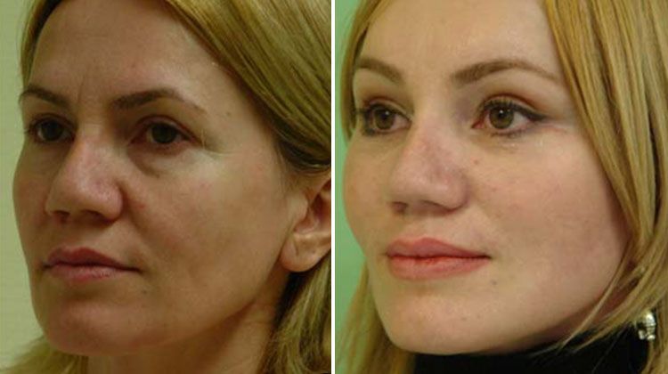 Фото до и после хирургического устранения возрастных изменений в области лица
