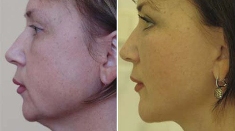 Фото до и после устранения возрастных изменений лица и гипоплазии подбородка