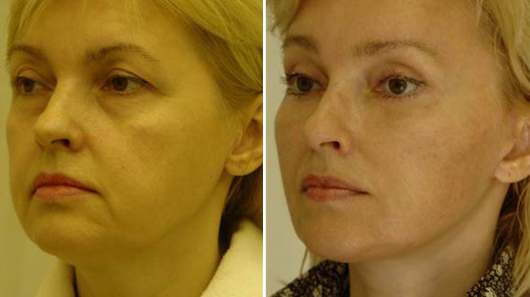 Пациентка обратилась с желанием омолодить лицо и шею. Анализ лица показал возрастные изменения в области лица и шеи. Наша концепция омоложения лица включает возвращение объемов, а не простое иссечение тканей. Было рекомендовано проведение верхней и нижней блефаропластики с устранением слезной борозды липофилингом, эндоскопической пластики лба с вертикальными миотомиями и нейротомиями, внутриротовой объемной эндопластики средней зоны лица, пластики SMAS, эндоскопически-вспомогательной пластики шеи и подтяжки зоны декольте.