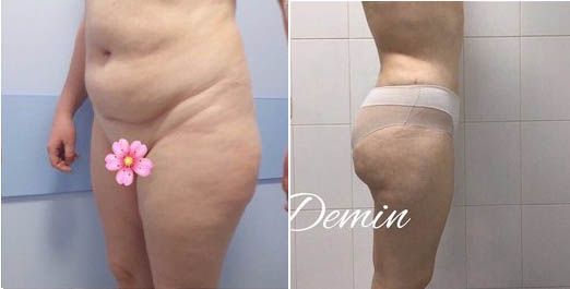 Абдоминальная пластика живота и процедура липосакции для пациентки доктора Демина с последующим ушиванием диастаза – расхождения мышц живота и транслокацией пупочного ложа. Результат – обновленная скорректированная фигура.