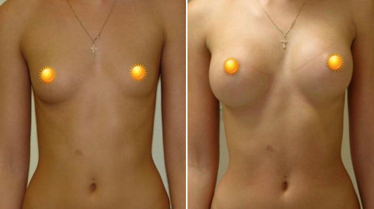 Фото до и после увеличивающей маммопластики из подмышечного доступа