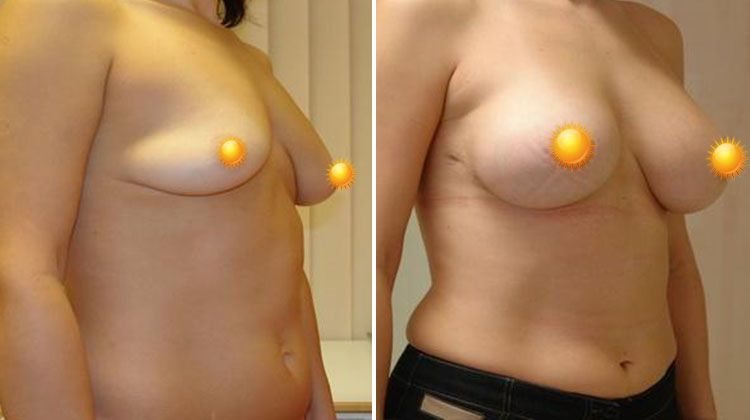Фото до и после пластики груди из периареолярного доступа имплантатами объемом 355 мл