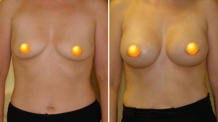 Фото до и после маммопластики имплантатами объемом 380 мл разрезом по ареоле