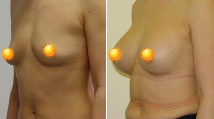 Фото до и после увеличения груди из субмаммарного доступа имплантатами объемом 320 мл