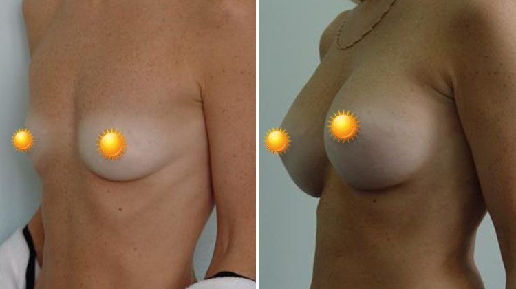 Фото до и после увеличения груди из субмаммарного доступа имплантатами объемом 420 мл