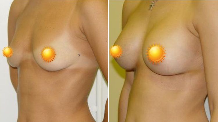 Фото до и после увеличения груди из субмаммарного доступа имплантатами объемом 225 мл