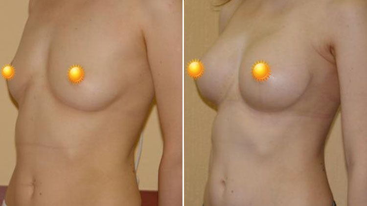 Фото до и после увеличения груди из подмышечного доступа имплантатами объемом 325 мл